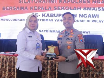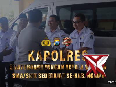 SILATURAHMI DENGAN PARA KEPALA SEKOLAH SMA/SMK SEDERAJAT SE-KAB. NGAWIFeb 13, 2026 05:17 - Berita - 17 viewsKapolres Ngawi AKBP Prayoga Angga Widyatama, S.I.K., M.Si., bersama Pejabat Utama Polres Ngawi melaksanakan kegiatan silaturahmi dengan para Kepala Sekolah SMA/SMK sederajat se-Kabupaten Ngawi yang bertempat di SMK PGRI 1 Ngawi. Kegiatan ini menjadi mome... -