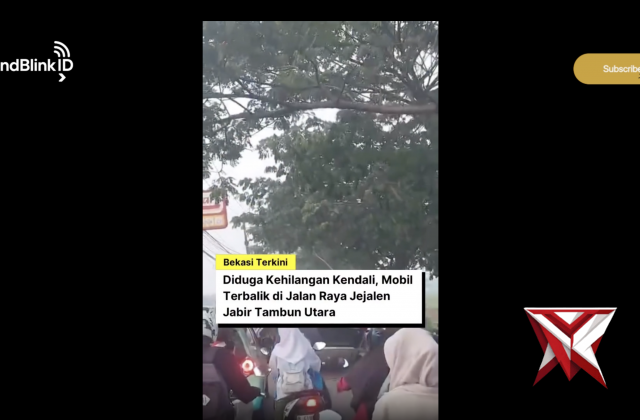 Mobil Terbalik di Depan Sekolah Baitul ‘Ilmi, Tambun Utara BekasiNov 09, 2025 02:10 - Berita - 50 viewsSatu unit mobil dilaporkan mengalami kecelakaan dan terbalik di depan Sekolah Islam Terpadu SMA Baitul ‘Ilmi, Jalan Raya Jejalen-Jabir, Desa Jejalenjaya, Kecamatan Tambun Utara, Kabupaten Bekasi, Jumat pagi (19/9/2025). Insiden ini sempat menggegerkan wa... -