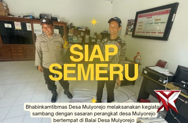 Giat Siap Semeru Polsek Ngantang Sasar Balai Desa MulyorejoDec 26, 2025 15:28 - Berita - 25 viewsPolsek Ngantang melalui Bhabinkamtibmas Desa Mulyorejo melaksanakan sambang dan dialogis dengan Kepala Desa dan perangkat Desa Mulyorejo bertempat di Balai Desa Mulyorejo -