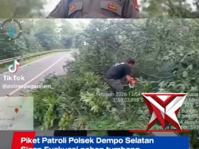 Personil Piket Patroli Polsek Dempo Selatan Sigap mengevakuasi pohon tumbang yang mengganggu kelanca...Mar 01, 2026 14:13 - Berita - 6 viewsPersonil Piket Patroli Polsek Dempo Selatan Sigap mengevakuasi pohon tumbang yang mengganggu kelancaran lalulintas,dijalan pagaralam lahat seputaran Atung Bungsu Kota Pagaralam. polrespagaralam poldasumsel humaspolrespagaralam beritapolrespagaralam kota... -