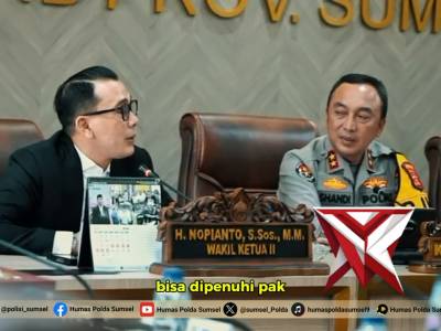 Kapolda Sumsel Laksanakan Lawatan Kerja dan Silaturahmi ke Ketua DPRD Provinsi Sumatera Selatan - Po...Feb 28, 2026 17:42 - Berita - 33 viewsKapolda Sumsel Laksanakan Lawatan Kerja dan Silaturahmi ke Ketua DPRD Provinsi Sumatera Selatan PALEMBANG – Kapolda Sumatera Selatan, Irjen Pol. Dr. Sandi Nugroho, S.I.K., S.H., M.Hum. melaksanakan lawatan kerja dan silaturahmi ke Kantor Dewan Perwakilan...