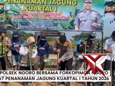 Kapolsek Ngoro bersama Forkopimca Ngoro giat tanam jagung kuartal I tahun 2026Mar 11, 2026 12:15 - Berita - 4 viewsKegiatan ini guna mendukung program pemerintah melalui swasembada pangan nasional -