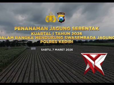 Tanam Jagung Kuartal I, Polres Kediri Garap 10 Hektar Lahan di PaparMar 27, 2026 04:34 - Berita - 0 viewsTanam Jagung Kuartal I, Polres Kediri Garap 10 Hektar Lahan di Papar KEDIRI– Lahan seluas 10 hektar di Desa Kedungmalang, Kecamatan Papar, Kabupaten Kediri pada Sabtu (7/3/2026) siang mulai ditanami jagung. Penanaman ini merupakan bagian dari kegiatan... -