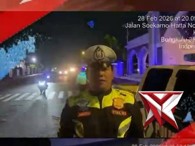 Amankan Sholat Isya dan Tarawih, Satlantas Polresta Bengkulu Gelar Patroli Blue Light Satuan Lalu L...Mar 01, 2026 07:14 - Berita - 7 viewsAmankan Sholat Isya dan Tarawih, Satlantas Polresta Bengkulu Gelar Patroli Blue Light Satuan Lalu Lintas Polresta Bengkulu melaksanakan patroli Blue Light serta pengaturan arus lalu lintas guna mengantisipasi guan Kamseltibcar Lantas mulai pukul 19.30 WI... -