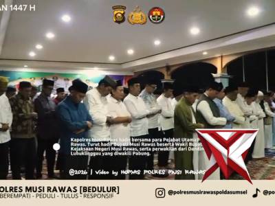 Sholat Tarawih Berjama’ahFeb 28, 2026 07:10 - Berita - 6 viewsSholat Tarawih Berjama’ah ?? Dalam rangka memeriahkan Bulan Suci Ramadhan 1447 H serta mempererat tali silaturahmi antara Forkopimda dan OPD Kabupaten Musi Rawas, telah dilaksanakan kegiatan Sholat Tarawih Berjama’ah pada pukul 19.30 WIB bertempat di Pen... -