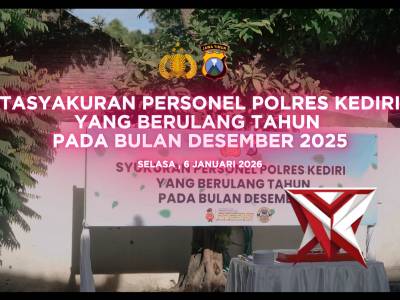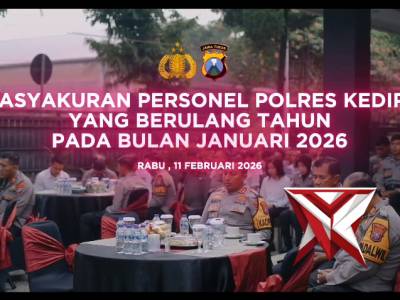 Tasyakuran Personel Polres Kediri Kelahiran Bulan Januari 2026 - PoliceTubeFeb 15, 2026 22:28 - Berita - 16 viewsTasyakuran Personel Polres Kediri Kelahiran Bulan Januari 2026 Polres Kediri Polda Jatim menggelar tasyakuran bagi personel yang berulang tahun pada bulan Januari 2026, bertempat di Wisma Kapolres Kediri, Rabu (11/3/2026). Kegiatan tersebut dihadiri Kap... -