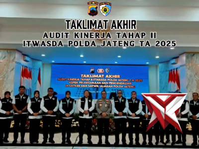 Taklimat Akhir Audit Kinerja Tahap II Itwasda Polda Jawa Tengah TA 2025Mar 23, 2026 07:08 - Berita - 1 viewsTaklimat Akhir Audit Kinerja Tahap II Itwasda Polda Jawa Tengah TA 2025 -