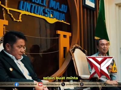 Kapolda Sumatera Selatan kunjungan ke kantor Gubernur Sumsel - PoliceTubeFeb 23, 2026 06:14 - Berita - 10 viewsKapolda Sumatera Selatan Irjen Pol. Dr. Sandi Nugroho, S.I.K., S.H., M.Hum. melaksanakan lawatan kerja ke Kantor Gubernur Sumatera Selatan pada Rabu (18/2/2026) pukul 14.00 WIB. Kegiatan yang berlangsung di Ruang Tamu Lantai 2 Kantor Gubernur tersebut men... -