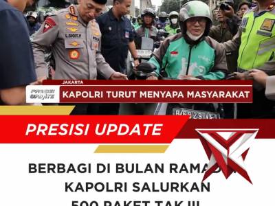 Jelang berbuka puasa, Kapolri beserta Pejabat Utama Mabes Polri membagikan 500 paket takjil - Police...Feb 26, 2026 17:36 - Berita - 7 viewsJelang berbuka puasa, Kapolri Jenderal Polisi Drs. Listyo Sigit Prabowo, M.Si., beserta Pejabat Utama Mabes Polri membagikan 500 paket takjil kepada masyarakat dan para pengendara yang melintas di jalan utama Mabes Polri, Jakarta Selatan. Kegiatan ini men... -