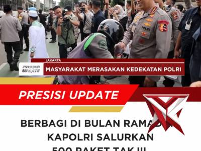 Jelang berbuka puasa, Kapolri beserta Pejabat Utama membagikan 500 paket takjil - PoliceTubeFeb 26, 2026 14:43 - Berita - 5 viewsJelang berbuka puasa, Kapolri Jenderal Polisi Drs. Listyo Sigit Prabowo, M.Si., beserta Pejabat Utama Mabes Polri membagikan 500 paket takjil kepada masyarakat dan para pengendara yang melintas di jalan utama Mabes Polri, Jakarta Selatan. Kegiatan ini men... -