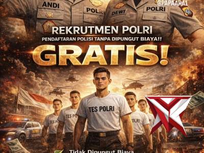 Masuk Polisi Gratis, jangan percaya Oknum yang meminta Uang, check pendaftaran di www.penerimaan.pol...Apr 09, 2026 11:34 - Berita - 9 viewsMasuk Polisi Gratis, jangan percaya Oknum yang meminta Uang, check pendaftaran di www.penerimaan.polri.go.id